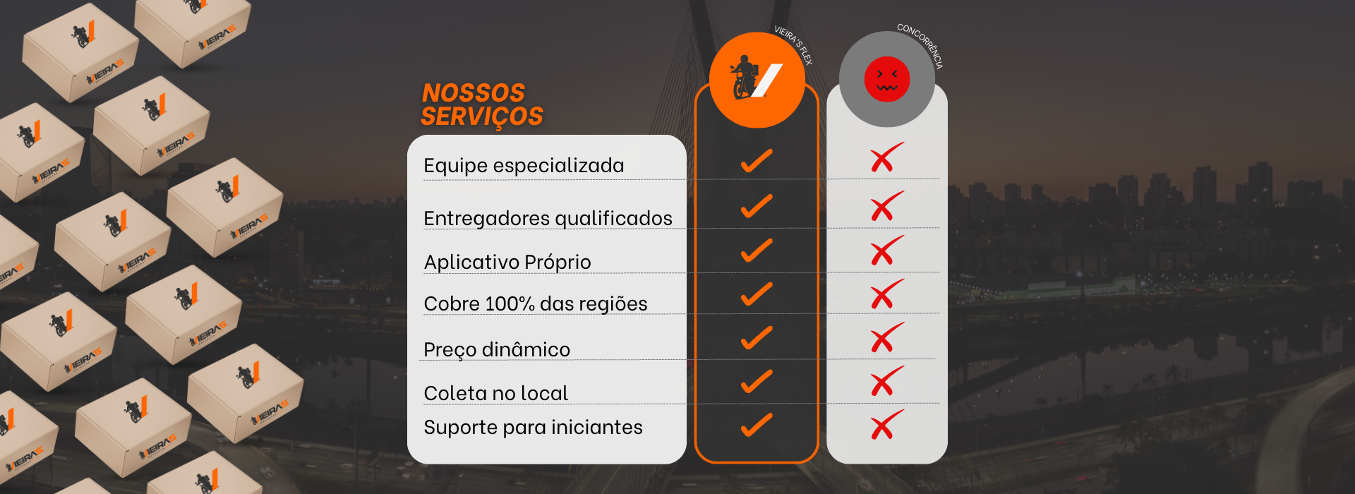 Somos uma transportadora especializada em entregas sameday na região de São Paulo, garantindo rapidez e eficiência para vendedores do Mercado Livre e Shopee.